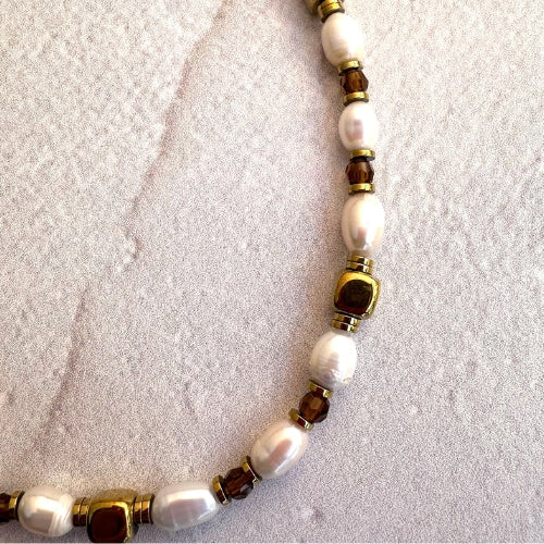 Colar | Pérolas Barrocas, Hematitas & Cristais Tcheco