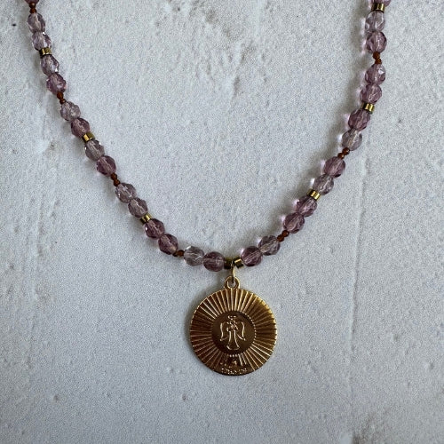 Colar | Cristais de Vidro Importados da República Tcheca, Medalha Dourada de Santo Anjo
