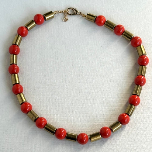 Colar | Contas de Vidro Laranja & Hematitas