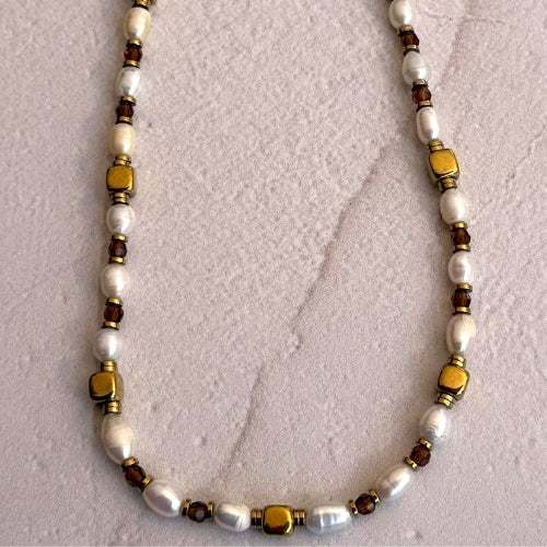 Colar | Pérolas Barrocas, Hematitas & Cristais Tcheco